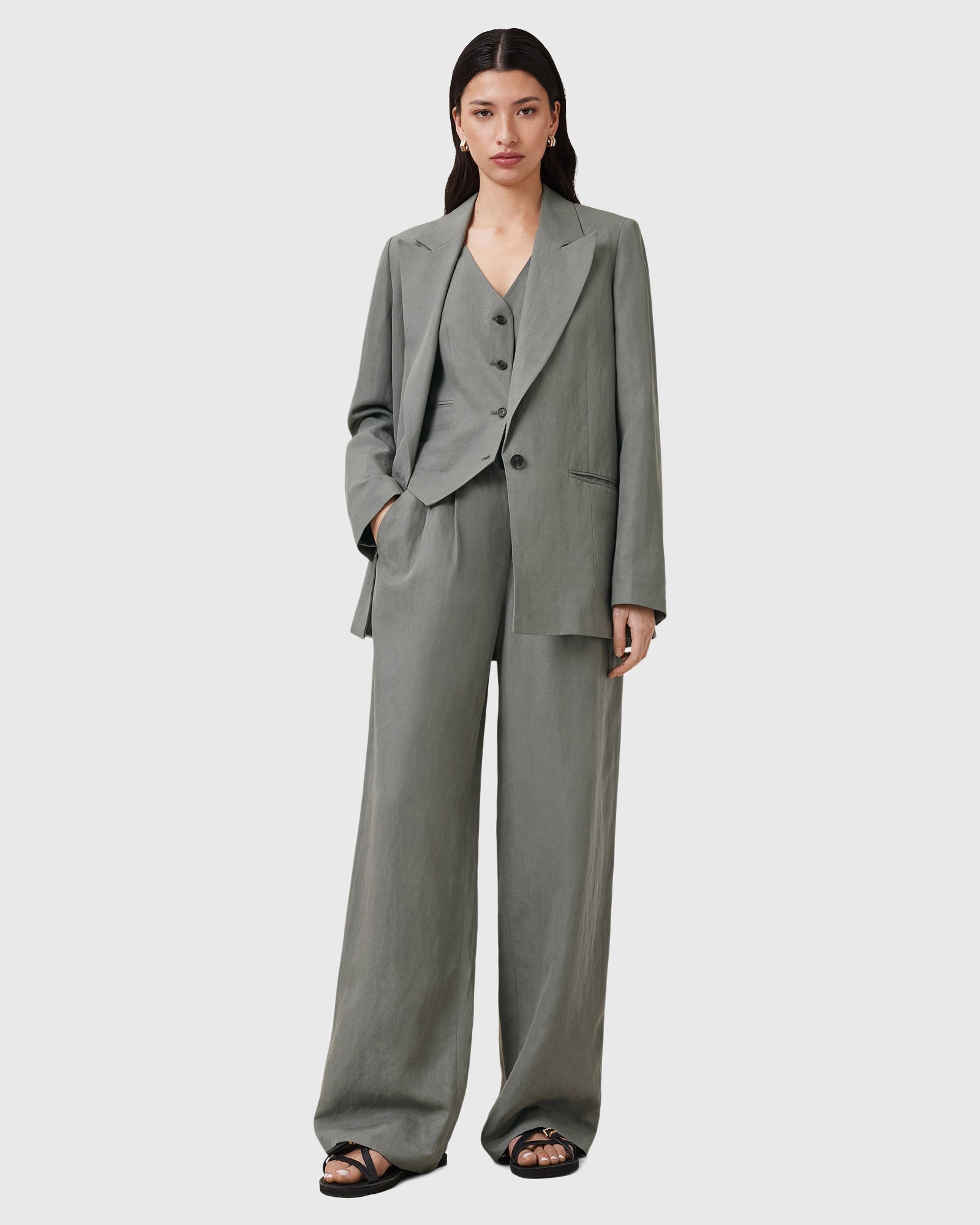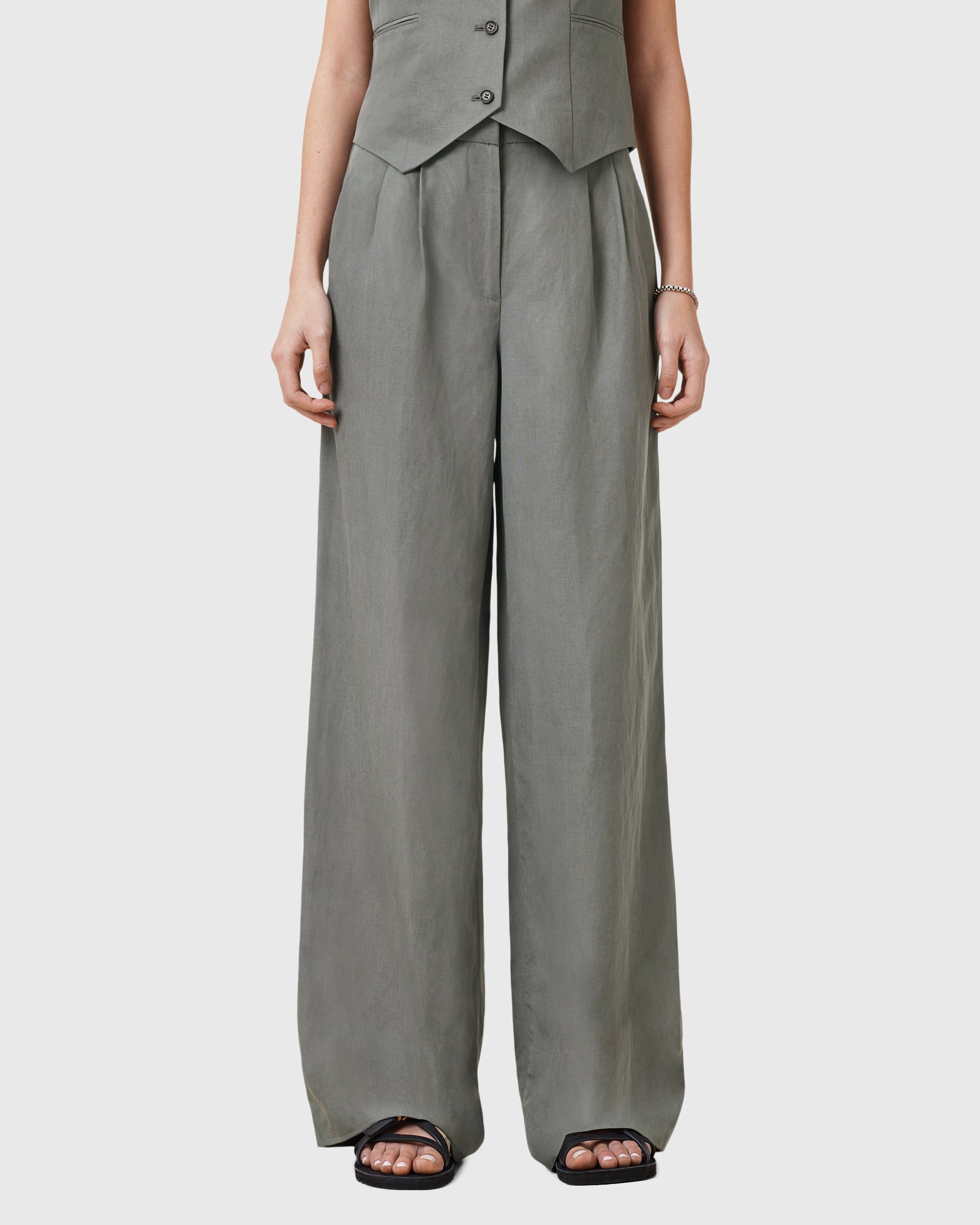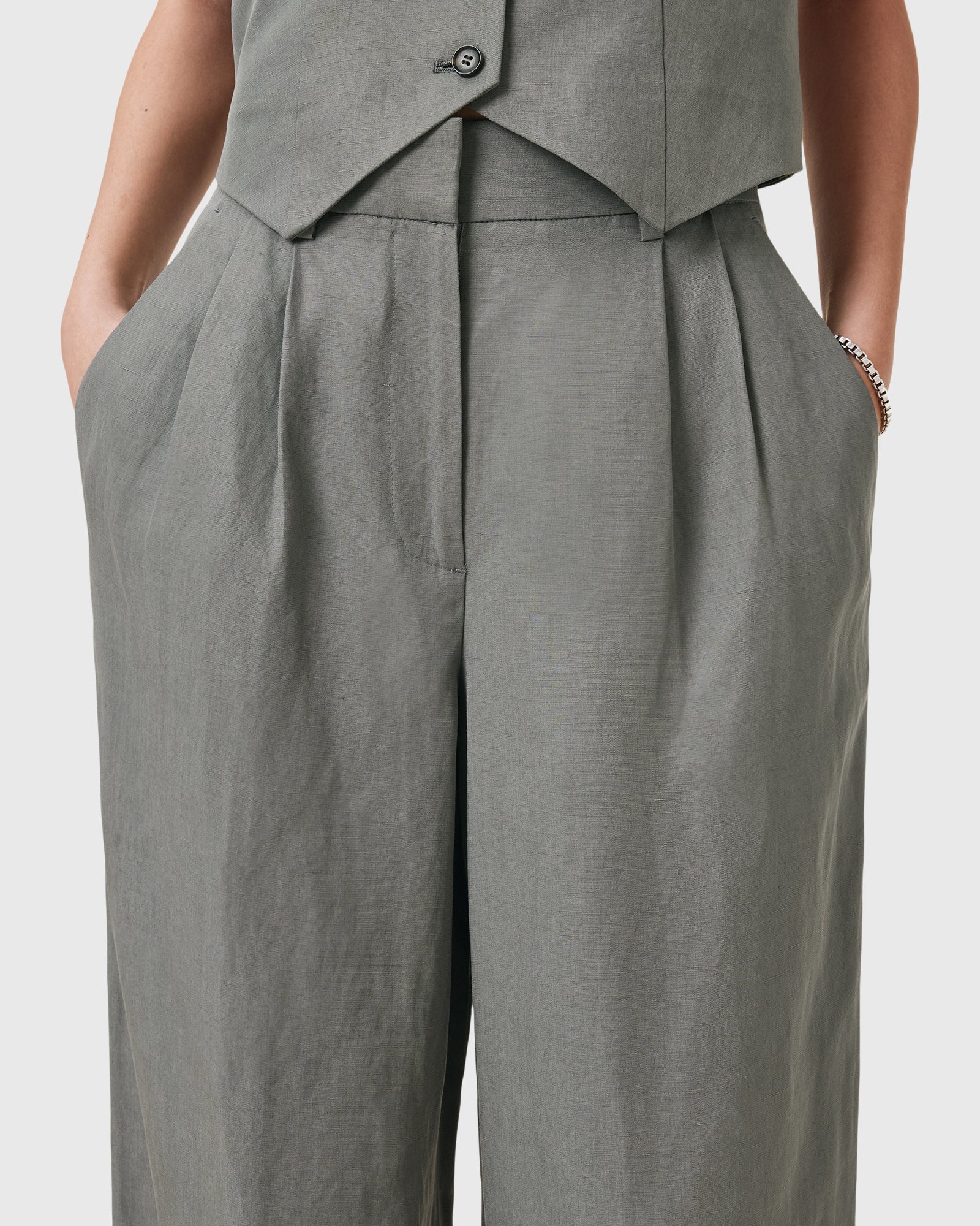 מכנסיים ארוכים לנשים מבית המותג אולסיינטס. בגזרה מחויטתת ומשוחררת, עם רוכסן סגירה ושני כיסים קדמיים.